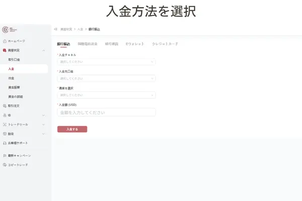 口座開設とMT4/MT5のログインが完了したら、入金を行いましょう。