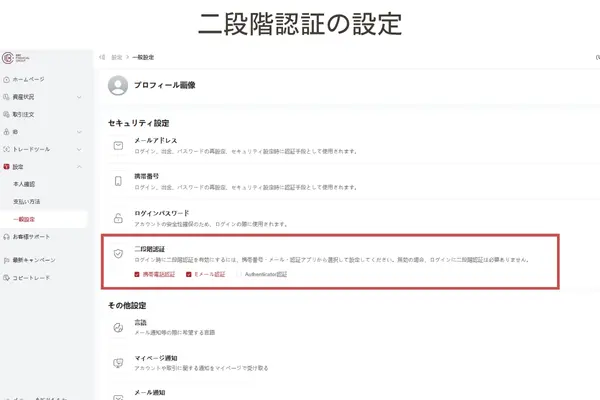 二段階認証を設定すると、ログインや出金時にパスワードに加えて認証コードの入力が必要になり、セキュリティが大幅に向上します。
