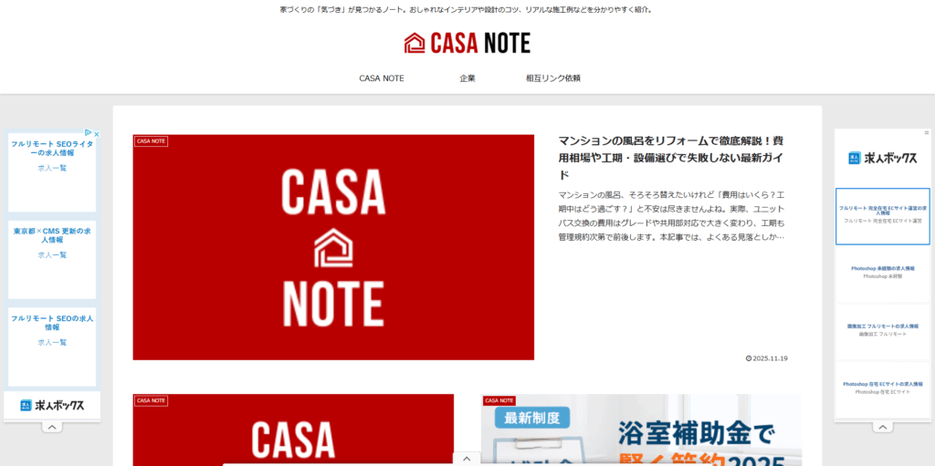 また「企業」ページでは、建築会社やリフォーム会社など住まい関連事業者の紹介も行い、生活者と専門事業者をつなぐ情報ハブとしての役割も担っています。快適な住環境づくりと資産としての不動産の守り方の両面から、現代の暮らしを支援するメディアです。