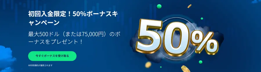 | 50%入金ボーナス | Classic Bonus口座のみ対象 | ||