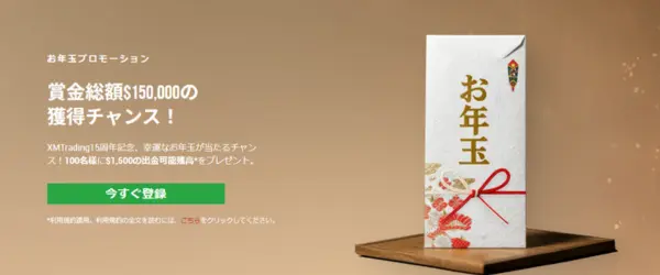 XMは15周年記念として、賞金総額$150,000(約2,250万円)のお年玉プロモ2025を開催中です。抽選で100名に1人あたり$1,500の出金可能な現金がプレゼントされます。
