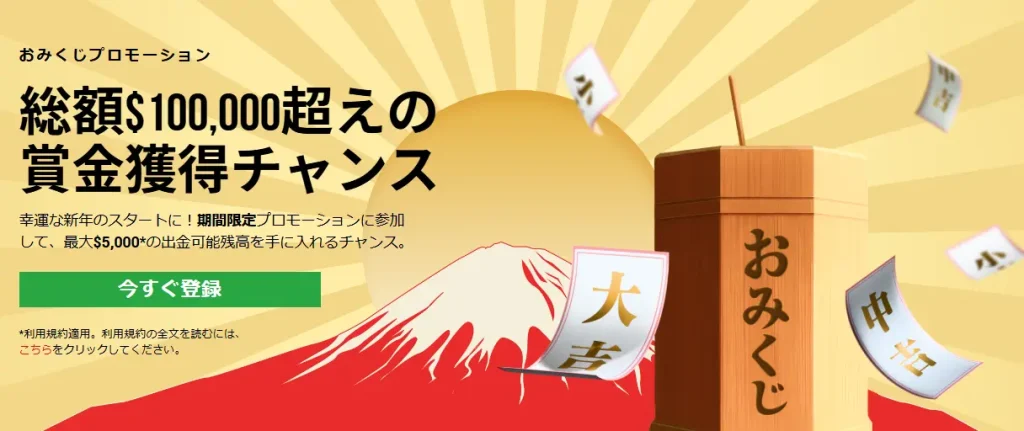 XMは新年を迎えるにあたり、賞金総額$100,000以上のおみくじプロモを開催中です。抽選で100名のお客様に出金可能な現金賞金がプレゼントされます。